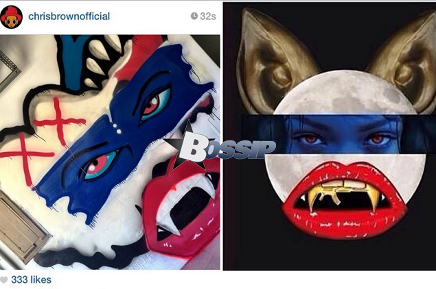 Rihanna recently kicked off her “Monster” tour with Eminem in Cali and loverboy Breezy took to his Instagram to show her some not-so-subliminal love by recreating..and posting….his graffiti version of the Monster Tour art….