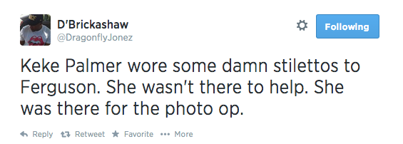 After traveling to Ferguson Missouri to protest the unarmed shooting death of Mike Brown, KeKe Palmer got BLASTED on Twitter for her seemingly ridiculous decision to wear high-heels to march with the people.