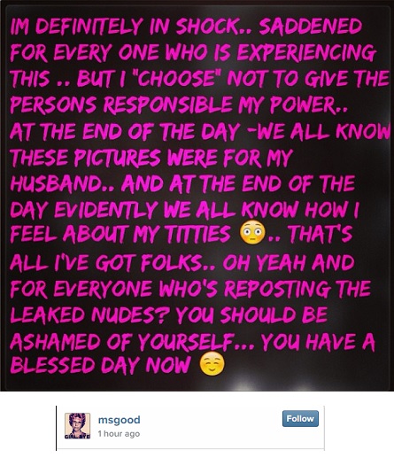 Joining the likes of Gabrielle Union, Kim Kardashian, Jennifer Lawrence and Vanessa Hudgens, naked photos taken by Meagan recently made their way onto the internet. The now-married Meagan was understandably livid about the photos, which she says she took for her husband, getting out and publicly responded following the hack.