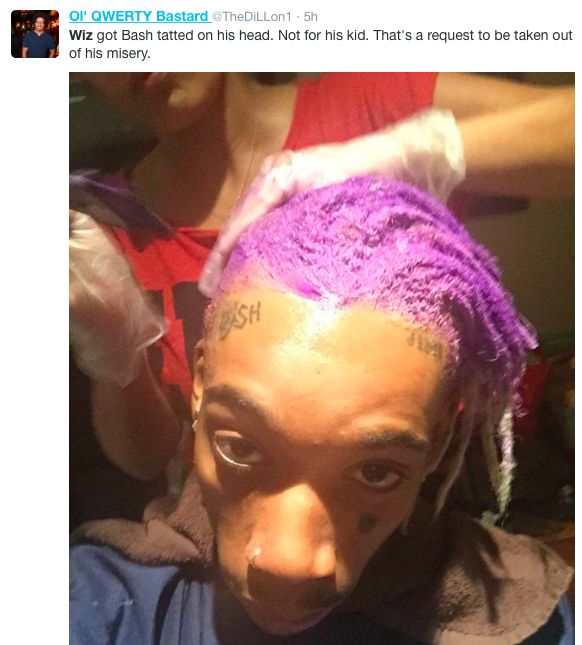 Wiz Khalifa’s got a new hairstyle. And it’s…a mess. It’s purple and weird and getting clowned. Here are some of the absolute funniest comparisons made about Wiz’s new color.
