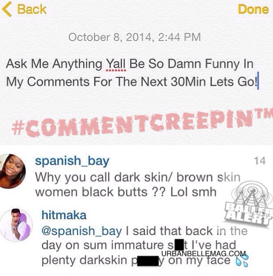 Berg recently too to his Instagram to host a 30 minute Q&A with some ‘Love & Hip Hop’ fans. One of the questions asked to the rapper was about his “dark-butts” comments and Berg admitted that the disgusting slander was immature: