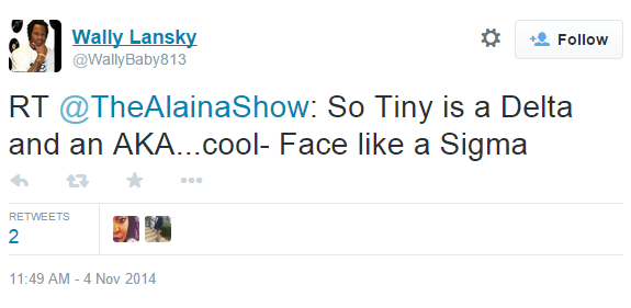 Tiny was recently pictured throwing up Delta Sigma Theta AND Alpha Kappa Alpha sorority hand signs in new Instagram pictures…