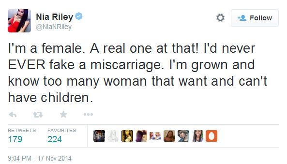 Nia also too to her Twitter account to blast haters who believed she faked her miscarriage for attention sloring fame: