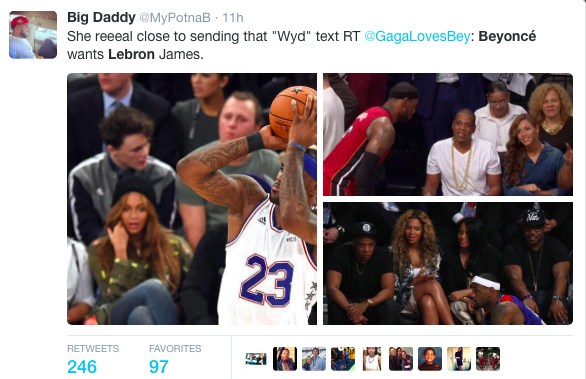 Beyonce and Jay Z love going to basketball games. It’s their thing. We know that Jay is a big fan and even had ownership in a team. But why does Bey go? Well, we might know why. It’s possible she has lusty eyes for Bron Bron. Don’t believe us? Take a look at the photo evidence.