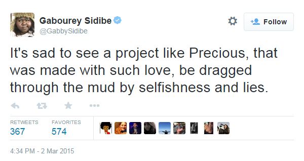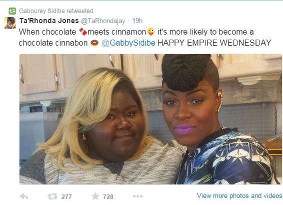 Now “Precious” co-star Gabourey Sidibe is adding her two cents in the conversation. Right before live-tweeting an episode of ‘Empire’ with the show’s other creator Danny Strong, she sent this subtle shade to Mo’Nique via Twitter: