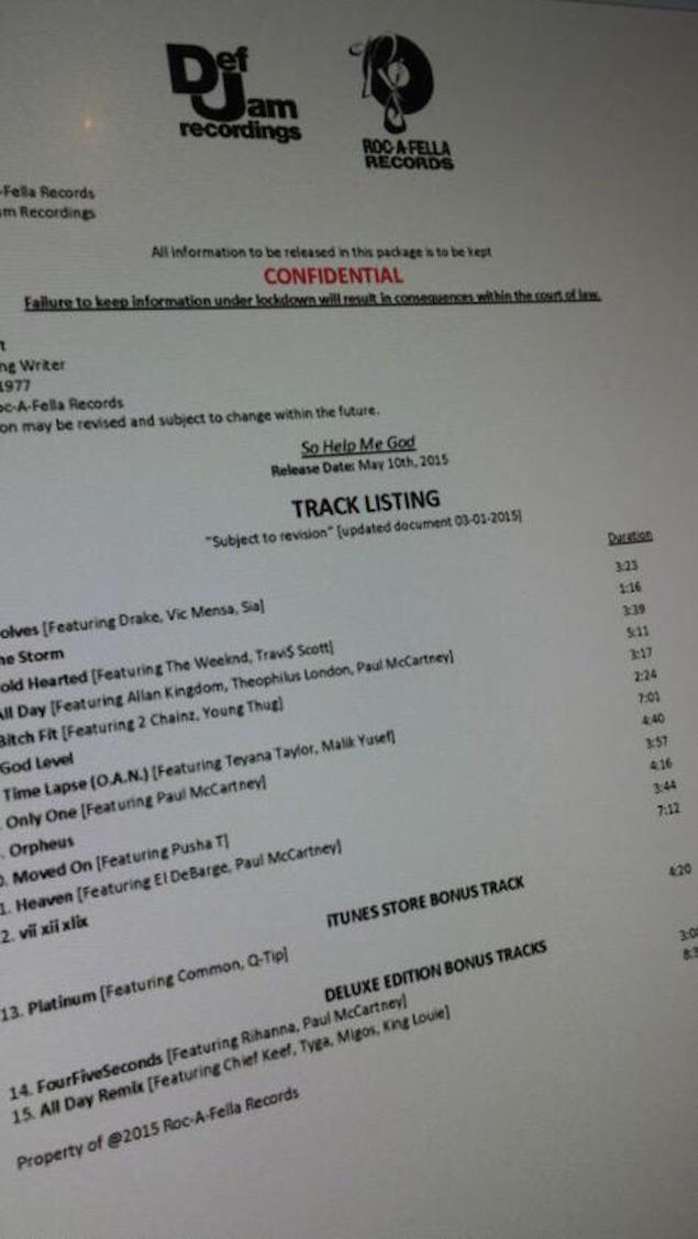 A Def Jam memorandum has leaked online which shows the album’s release date (May 10), as well as the track list and features.