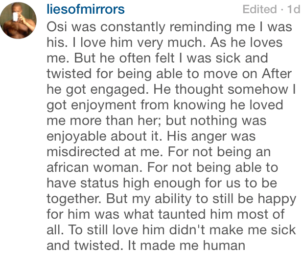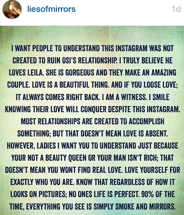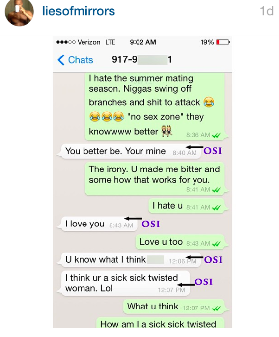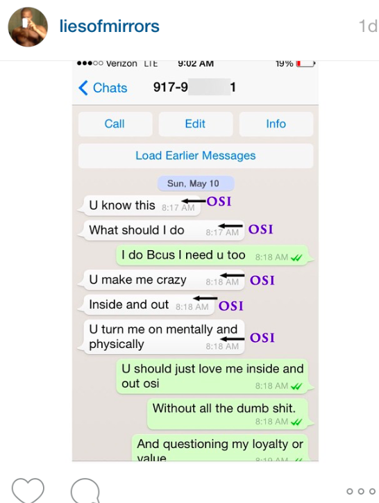 The side-chick went on to expose text messages with Osi where he discussed their relationship and how much he “loved” her: