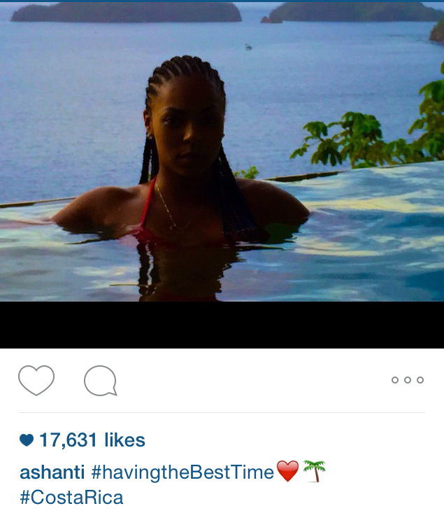 Out of the country with with his new boo, huh? Ashanti recently posted baecation pics in Costa Rica during the same time Amelia posted the deadbeat daddy photos…