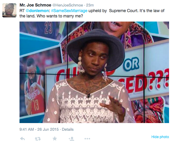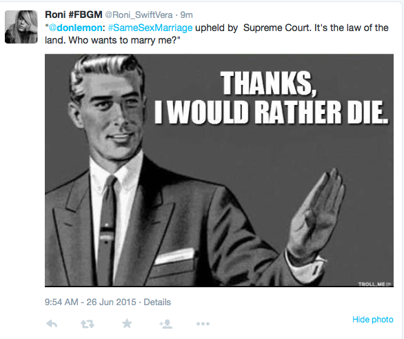 Hooray! Thanks to the Supreme Court ruling, gay couples can get married in every state. Don Lemon responded with an unfortunate tweet asking if anyone would marry him. And…it didn’t go well. At all. It’s a good day when we can celebrate equality AND slander Don Lemon. Rejoice!