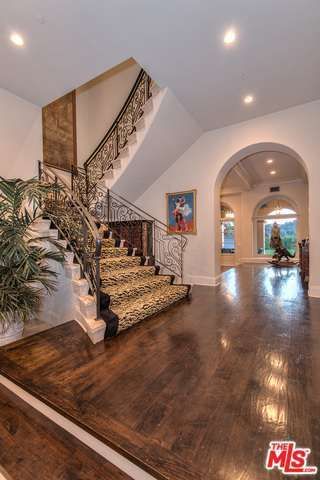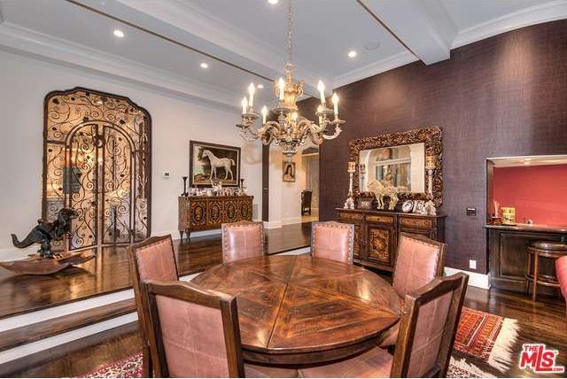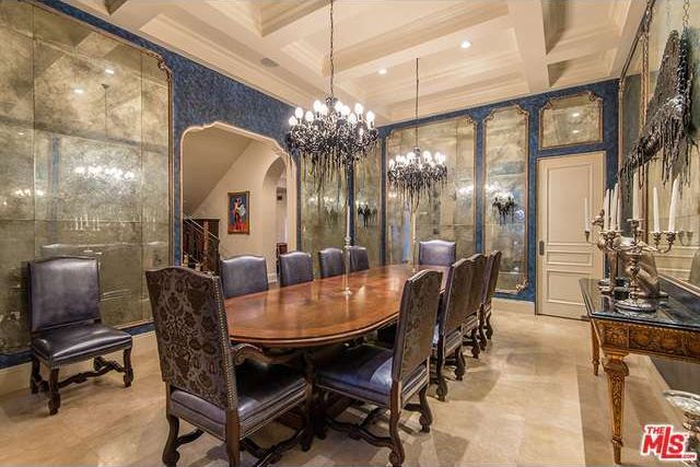 It certainly is different, and it certainly shreds the competition. There are three pirate ship chandeliers in the foyer along with a statue of a buxom pirate lass—although we’re guessing Slash will take that bounty with him. He and Perla are getting divorced, so they’re selling the seven-bedroom house they bought in 2009.
