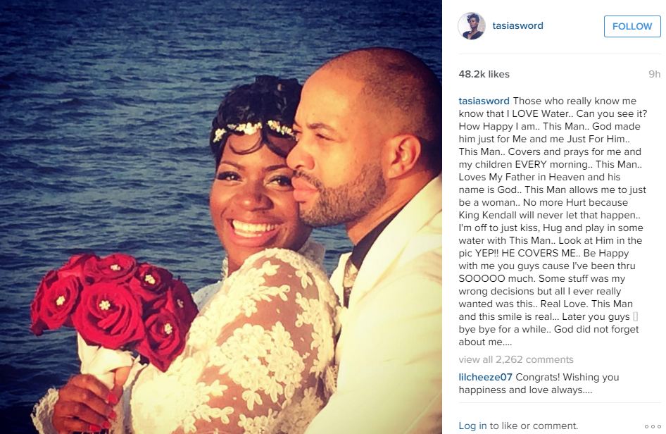 Barrino shared a stunning photograph of her and her new husband cuddling up on the deck of the boat (Barrino wearing a pretty white dress with white lace sleeves, her husband in a matching white suit). She beams as she holds a red posy of flowers with the ocean in the background. “Those who really know me know that I LOVE Water.. Can you see it? How Happy I am.. This Man..” she captioned the photo. “God made him just for Me and me Just For Him.. This Man.. Covers and prays for me and my children EVERY morning.. This Man.. Loves My Father in Heaven and his name is God.. This Man allows me to just be a woman.”