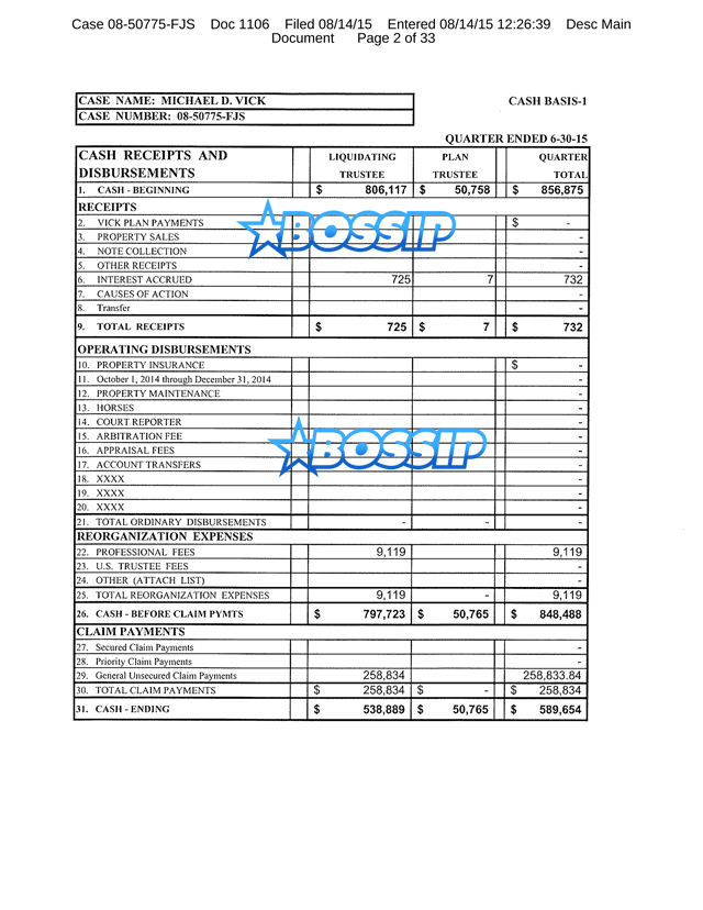 However, the biggest update in the bankruptcy is Vick has finally settled with the last creditor in his case. This means all the debt he owed to the various 50 creditors has been handled … which means his bankruptcy will be coming to an end after nearly 7 years.