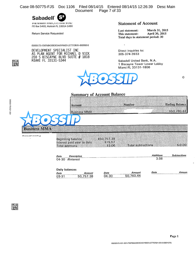 The ex-NFL star had a total of $806,117 in the beginning of April but at the end of June – minus all of his expenses and payments to creditors – he was left with only $538,889