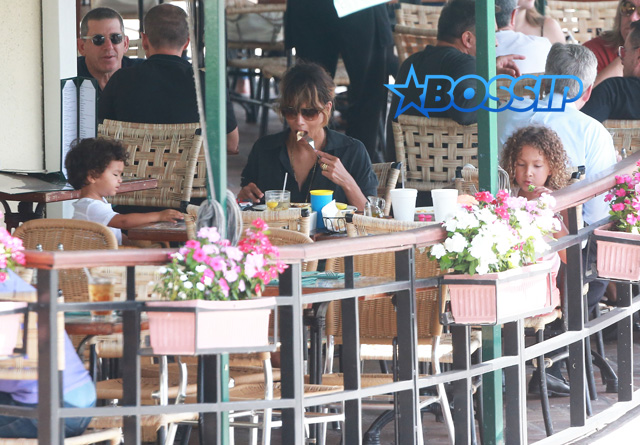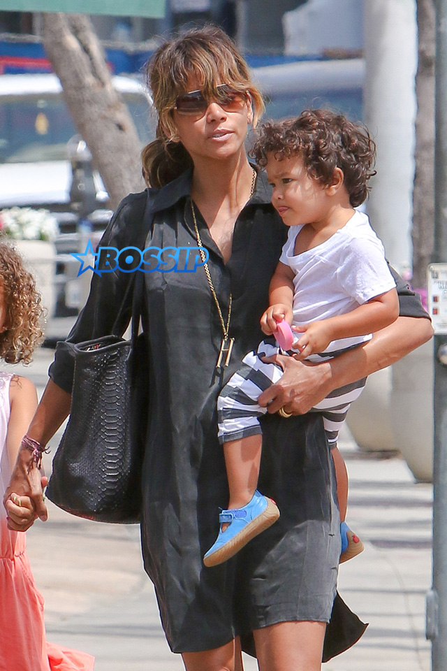 - West Hollywood, CA – Halle Berry walks hand in hand with her son Maceo and daughter Nahla as they head to lunch at Cafe Med in West Hollywood. Nahla got a bit camera shy and slid behind her mother as they arrived at the restaurant together. AKM-GSI September 1, 2015