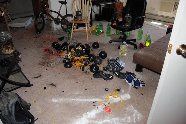 Today, the Aurora Police Dept. released photos of both the horrific crime scene as well the squalid booby-trapped apartment where James Holmes lived.