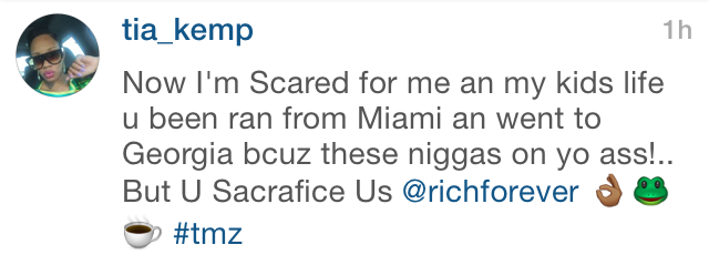 Tia also claims that she and her children fear for their lives because Ross has threatened to run them out of Miami. Hit the flip for more from Ross’ distressed baby mama next…