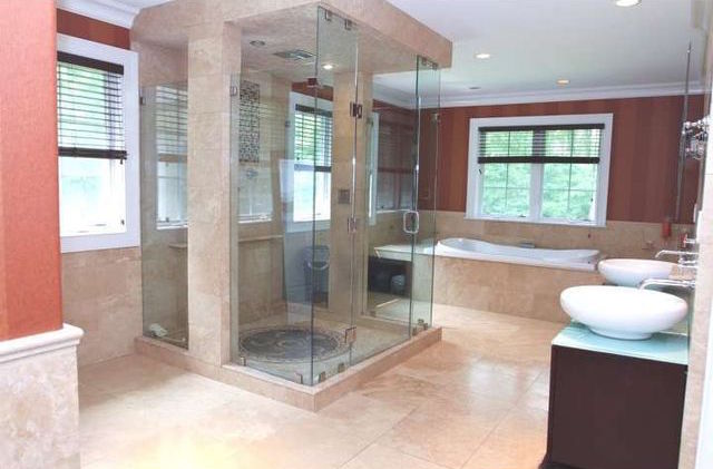 Built in 1980, the four-bedroom Colonial has been renovated with custom-made fireplaces (the one in the living room is gigantic) and cherry hardwood floors. The basement of the 7,623-square-foot house features a man cave, complete with a pool table, bar, media room, and gym.