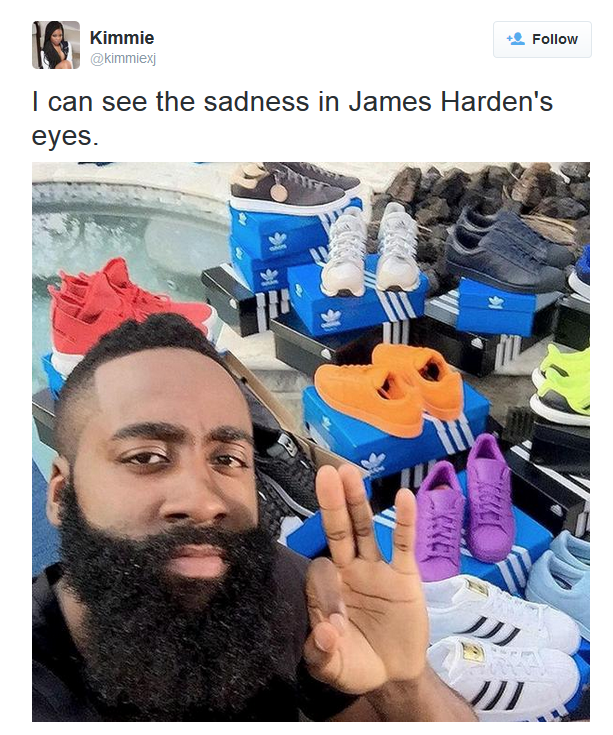 The good news is that James Harden will earn $200 million to rock Adidas for the next decade. The bad news is that he can’t rock Nikes/Jordans for the next ten years where he’ll likely face never-ending shoe slander. But hey, $200 million is $200 million.