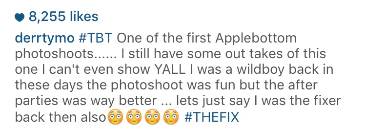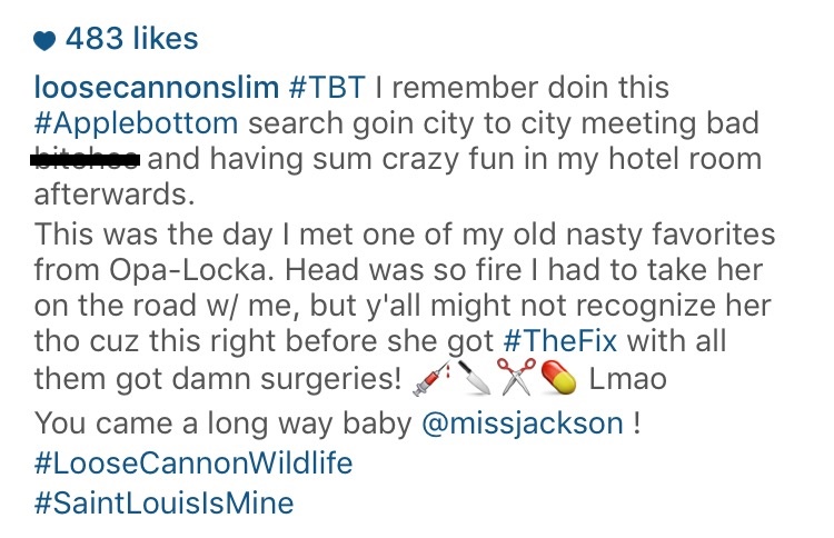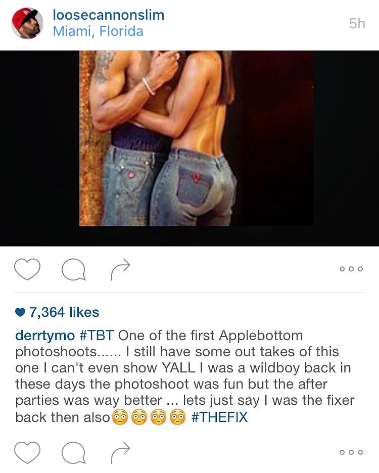 The St. Lunatic promptly took it upon himself to post a #TBT photo of an old Apple Bottom jeans advertisement featuring himself and Loose’s baby mama…with quite an interesting caption: