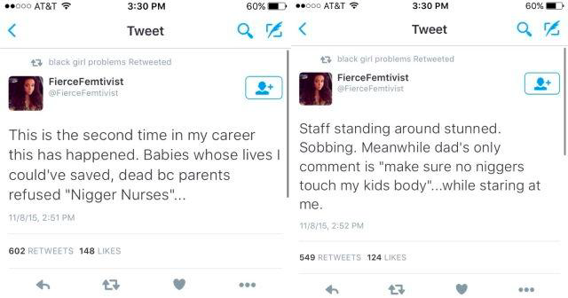 Well here’s a tragic story we really hope isn’t true. This Twitter user, Fierce Femtivist, claims to be a nurse who had a tragic encounter with a racist old man. The man allegedly refused her aid for his dying son and she had to watch the son die in the hospital. Is this story real? You decide. The sad thing is, we can totally see it happening.