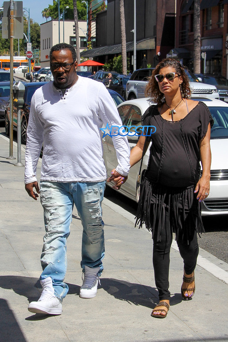 Bobby Brown’s wife isn’t the only one sporting a bump these days. The R&B singer looks like he’s been eating for two as well. The pair were photographed visiting a doctor’s office in Beverly Hills and doing a little shopping in the area afterward.