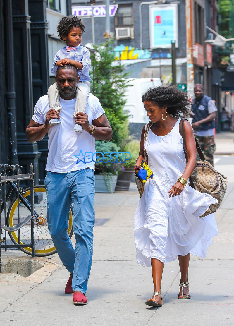 - Exclusive… 52114251 Actor Idris Elba and his son Winston are spotted out with a friend in New York City, New York on July 6, 2016. Winston got a little tired of walking so his daddy gave him a ride on his shoulders. FameFlynet, Inc – Beverly Hills, CA, USA – +1 (310) 505-9876