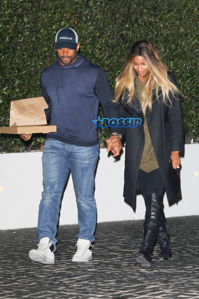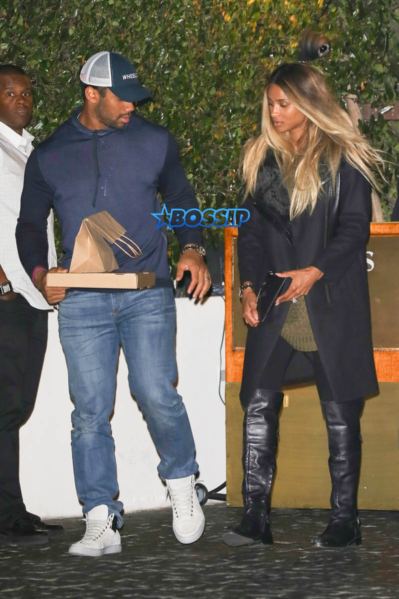 Ciara and Russell Wilson were photographed leaving dinner at Cecconi’s and she’s still looking like she could be covering a gut full of baby Wilson.