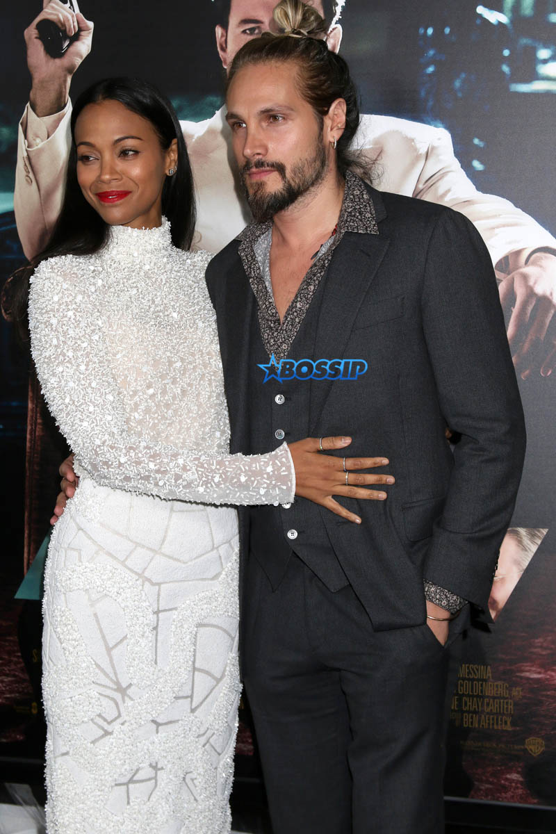 Zoe Saldana looked refreshed in her all white get up as she hit up the red carpet for the premiere of her new movie ‘Live By Night.’ She was joined by her hubby Marco Perego.