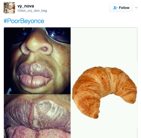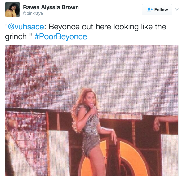 It’s nearly impossible to clown Beyonce (who embodies flawlessness) but Twitter found a way with the hilariously petty #PoorBeyonce wave that marked the only time we all laughed AT Beyonce instead of Michelle or any other slanderable child of Destiny.