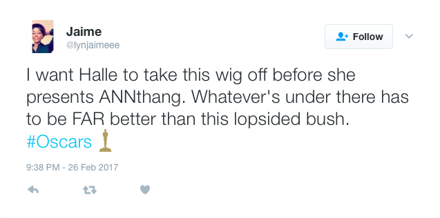 Halle Berry is one of the finest women in all of celebrityville. She’s definitely an all-timer. However, even Michael Jordan misses dunks. And Halle definitely pulled up to the Oscars with a jacked up…wig(?)…or maybe her real hair? Whatever the case, she out here looking crazy.