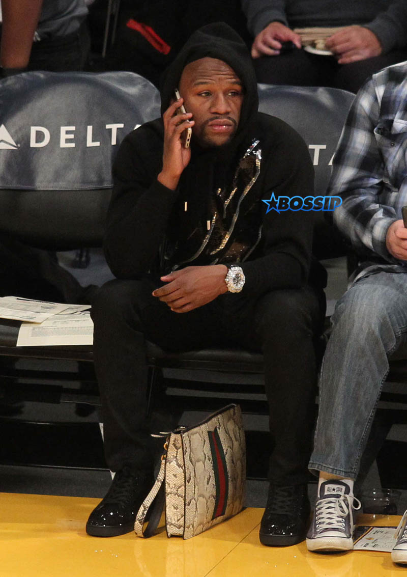 Floyd hit up the game the day after celebrating his 40th birthday party. No wonder he looks a little tired.
