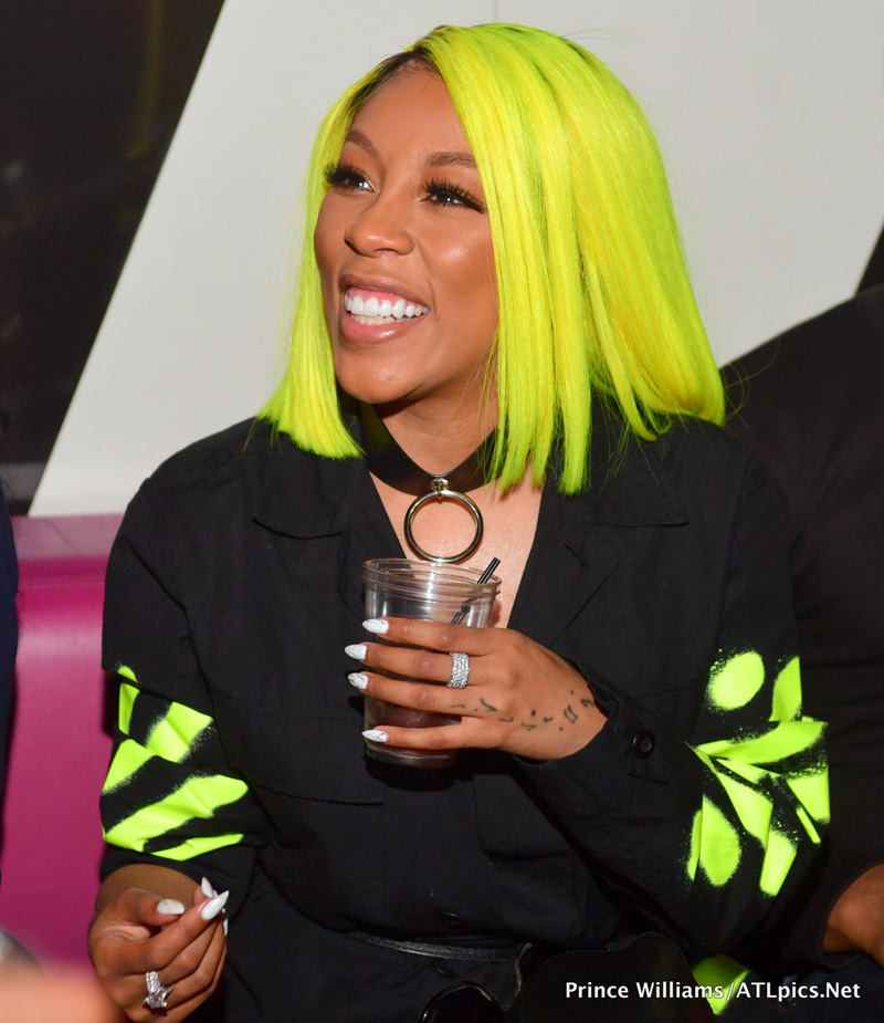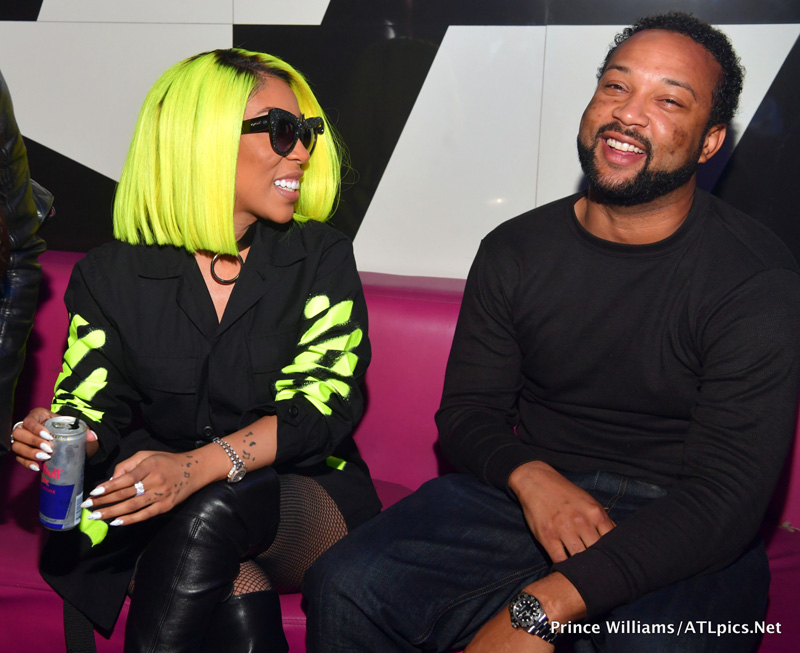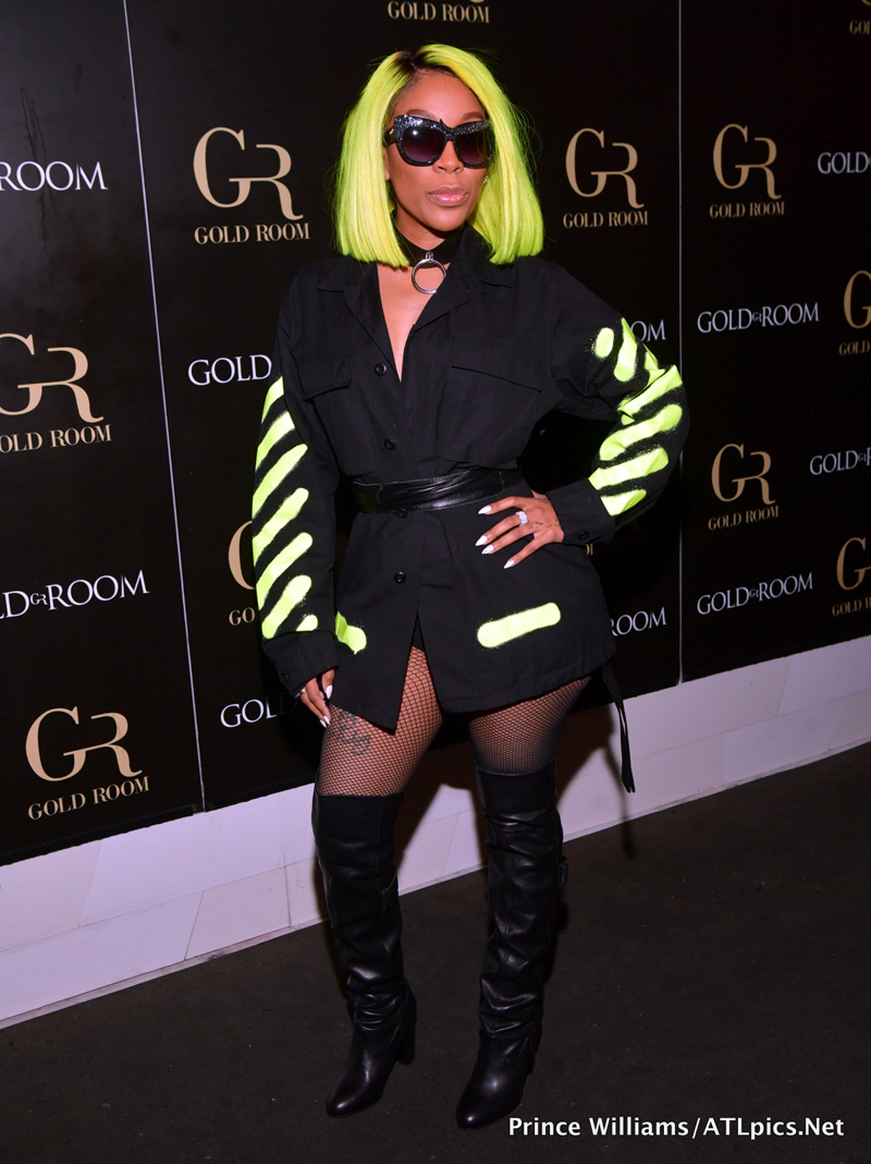 K. Michelle brought in her birthday Friday with a party at Gold Room nightclub in Atlanta. She was joined by her boo thang Dr. Kastan Simms, rapper Trina, “Love & Hip-Hop Atlanta” co-star Karlie Redd and Karlie’s new boo Ceaser. K rocked a black and lime green Off White top over fishnets… And of course a colorful bob. You like?