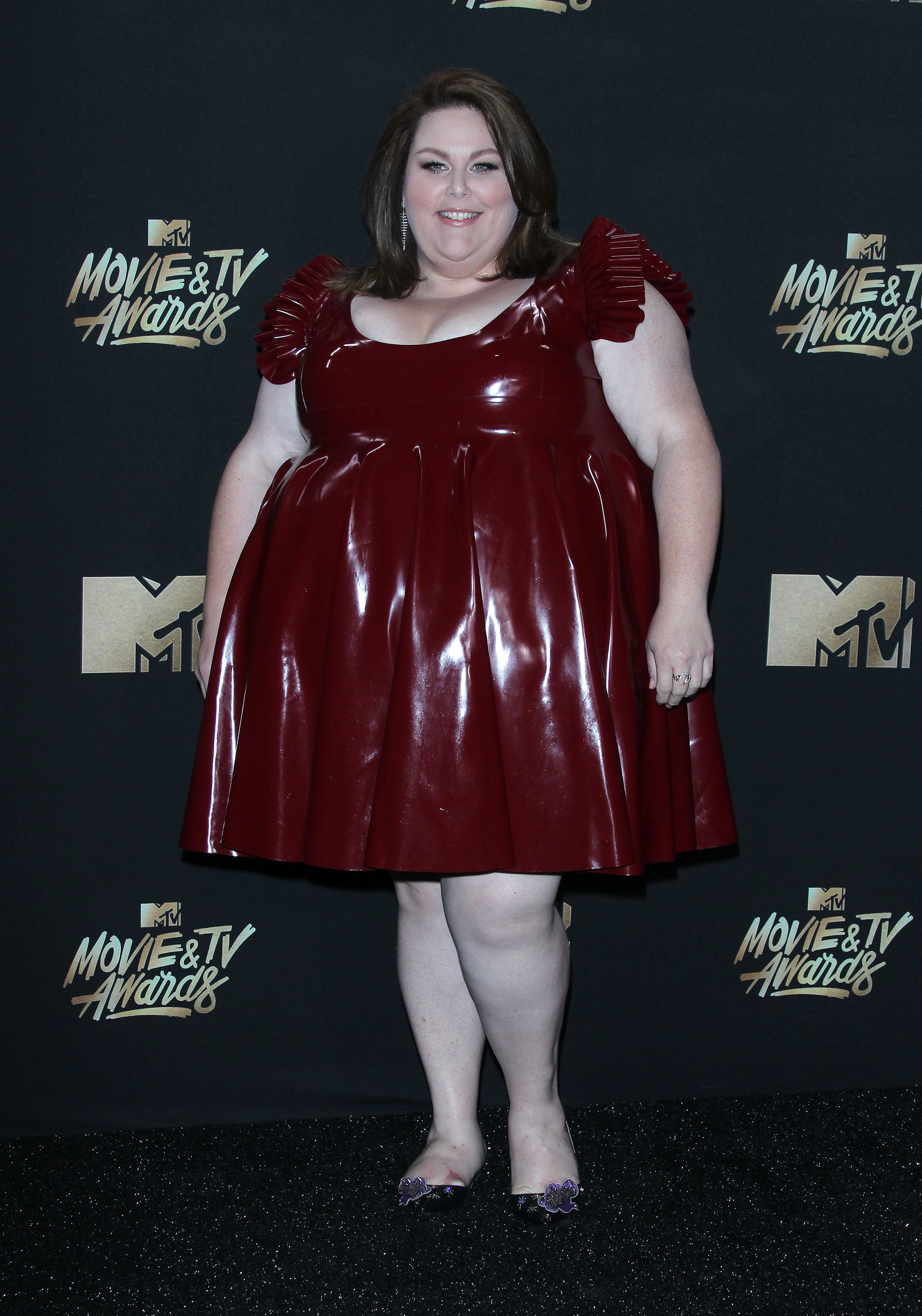 This Is Us star Chrissy Metz and her character on her hit TV drama both aren’t afraid to address their weight or the critics who try to body shame them. The actress was recently spotted in a latex get up for the MTV Movie awards. She posed on the red carpet in the red number.