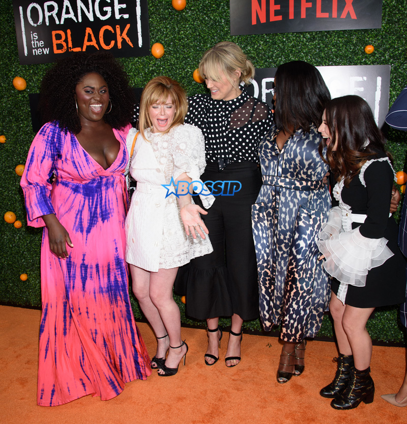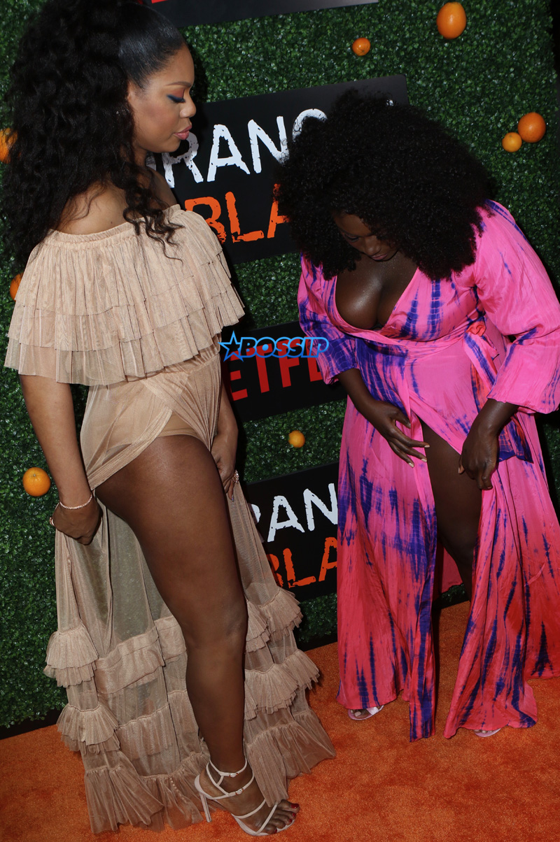 “Orange Is The New Black” stars celebrated their 5th season Friday at Catch Restaurant in NYC and boy were they ever in a frisky mood! Danielle Brooks and Laverne Cox posted up side by side to show some skin.