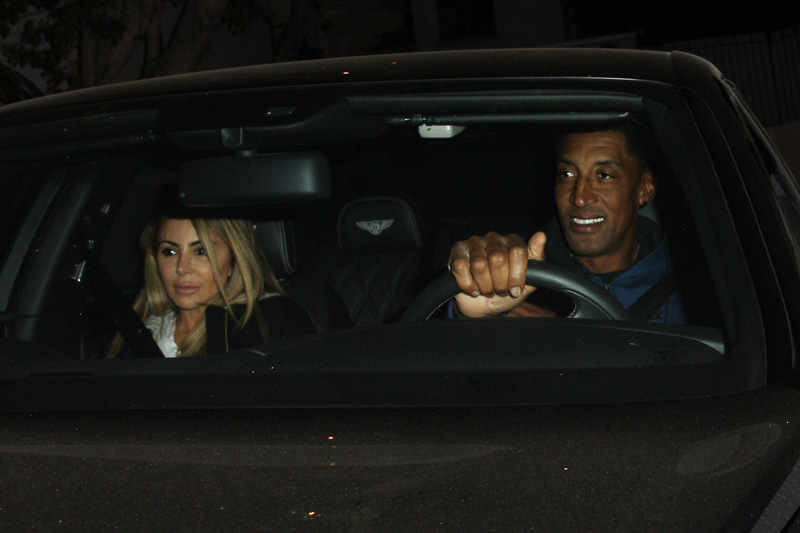 Looks like Scottie and Larsa Pippen are back on track. The retired baller and his pampered wife were photographed leaving Chateau Marmont Hotel after having dinner with Kourtney Kardashian.