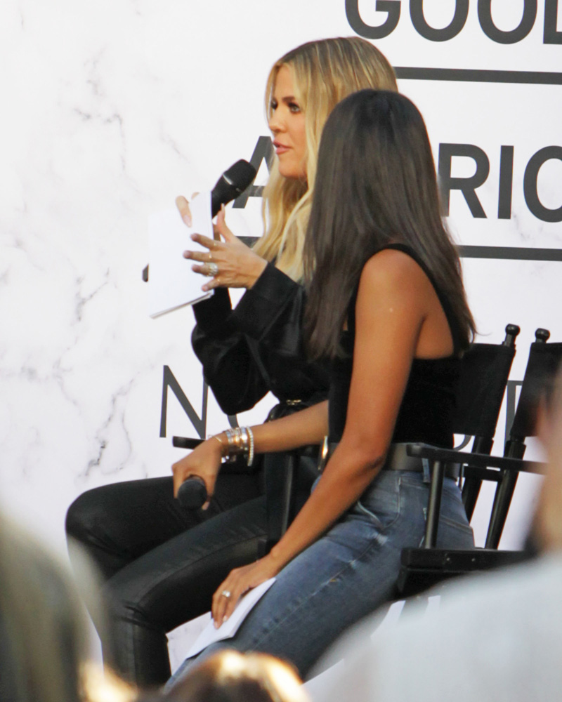 Welp… Can you see it? Since Khloé Kardashian’s pregnancy was reported we’ve been waiting for her to reveal her bump full of baby baller. Khloé and her Good American partner Emma Grede celebrated the one year anniversary of their brand with an event at Nordstroms in LA Saturday. She definitely looks like she is hiding something under that blazer right?