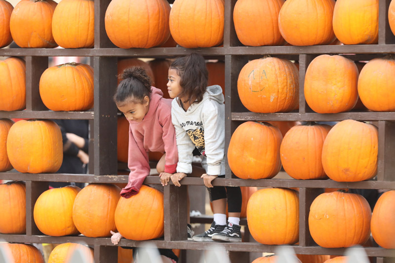 Kourtney Kardashian had her hands full Sunday after bringing Penelope and North to a local LA pumpkin patch along with North’s bestie Ryan Romulus (whose mom Tracy also tagged along) and Larsa Pippen’s daughter Sophia.