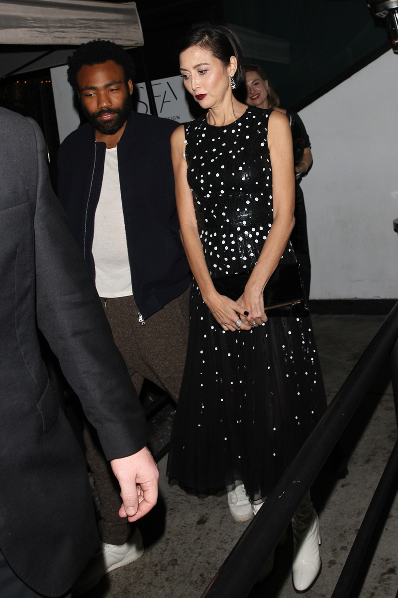 It’s awards season, so all the Hollyweird stars are stepping out with their significant others! Donald Glover was photographed heading to Poppy Club to party with this woman… Who’s actually not the mother of his two kids, even though photo agencies had her listed as such. Guys, all white women do not look alike.