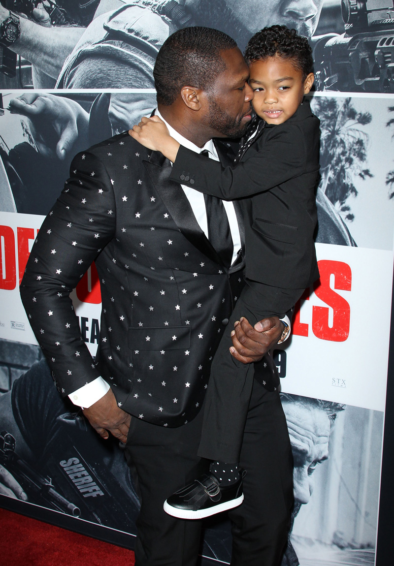 50 Cent brought his adorable son Sire to the premiere of “Den of Thieves” in Los Angeles Wednesday night.