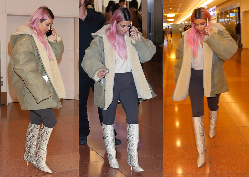 Kimmy Cakes, Kanye and her sisters just arrived for a family trip in Japan this week. Kim and the girls were photographed at the Haneda International Airport where she showed off her new pink ‘do.