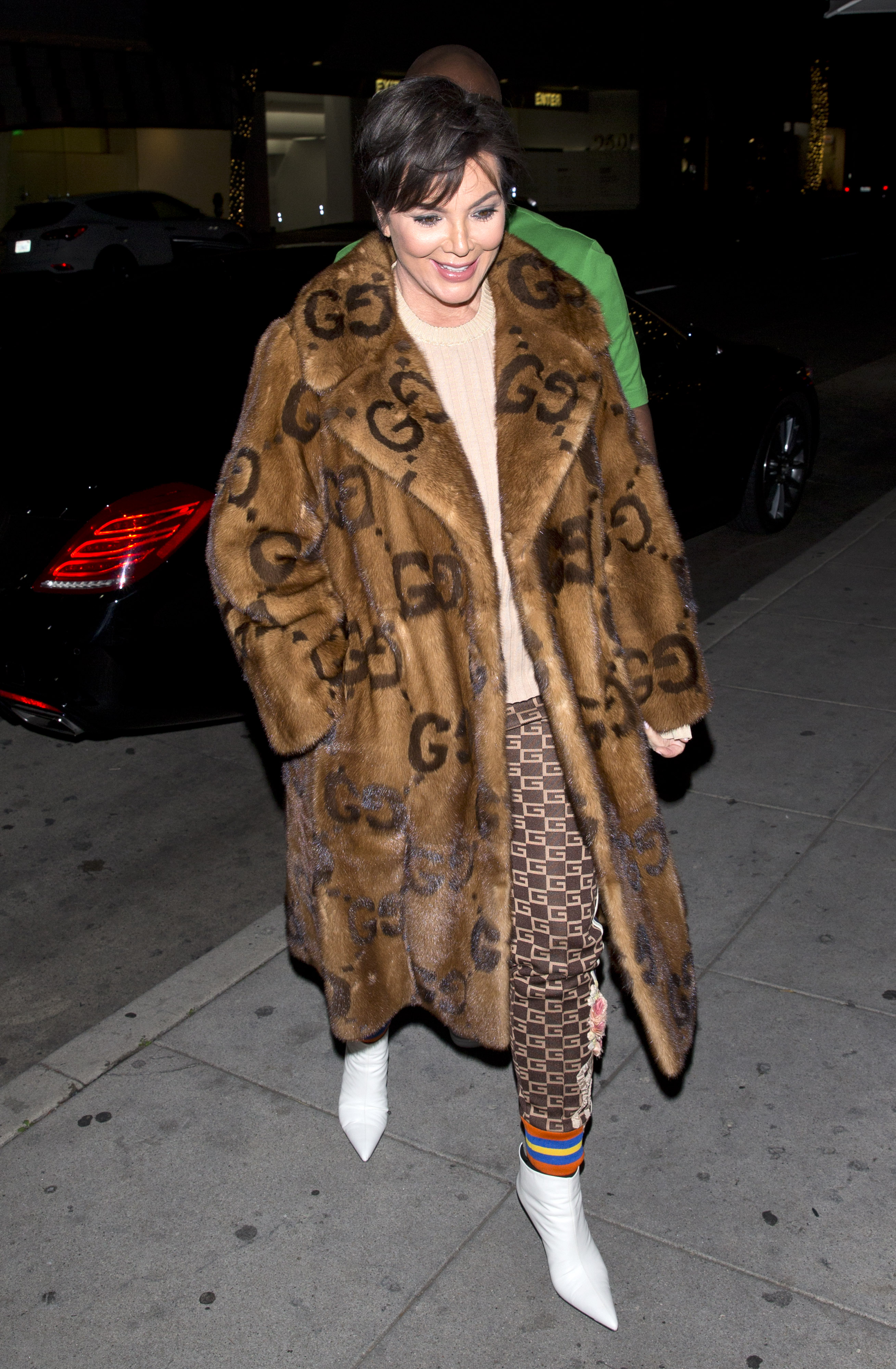 Now Kris and Corey are on a dinner date together and mixed matched their swag. She wore a mink Gucci coat from the car to the front door of Mr. Chow in Beverly Hills hat retails at $58k. Are you feeling their get ups???