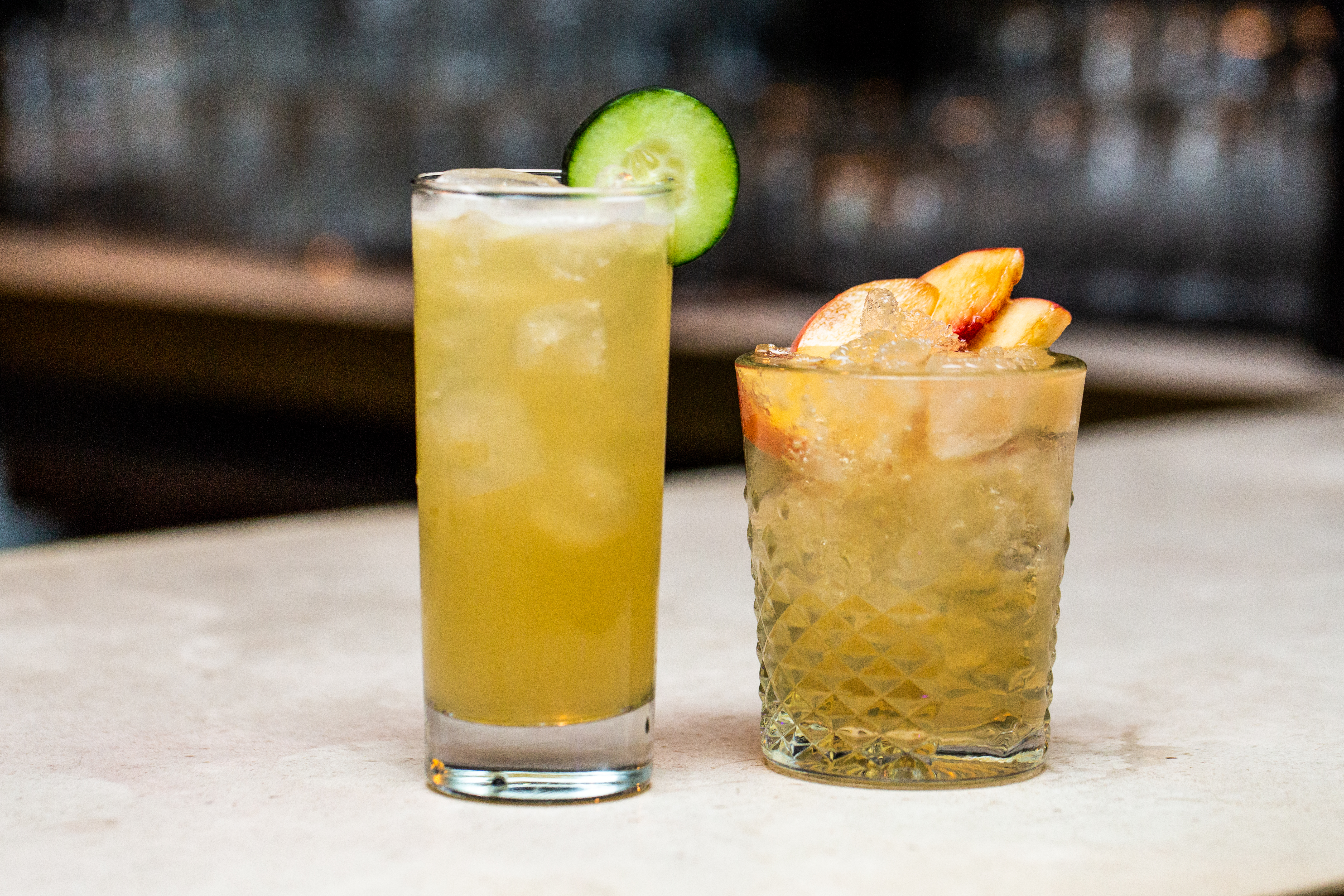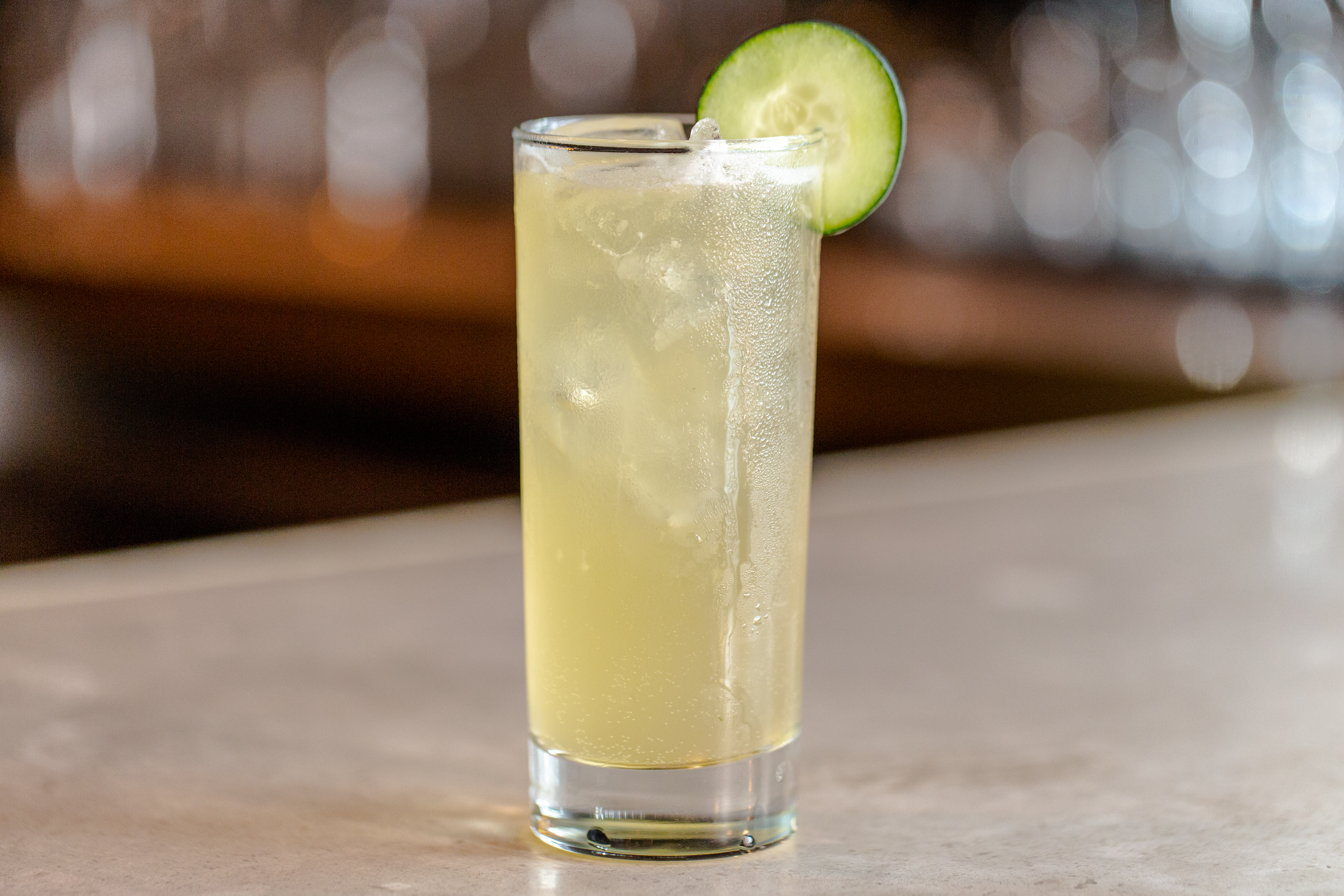 Optional: Garnish with slice of cucumber.