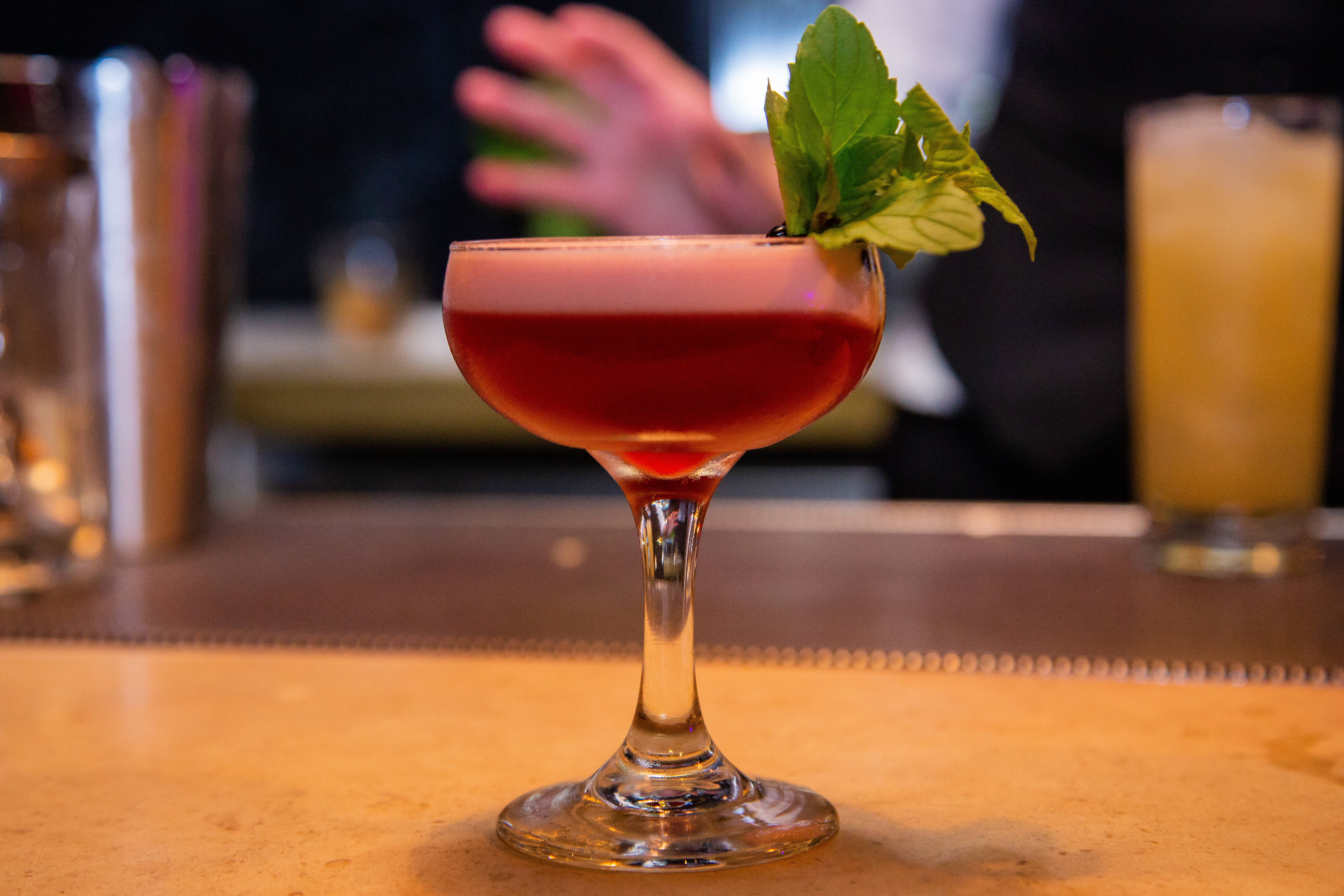 Method: Dry shake all with a Beagle Ball**. Remove ball, add ice and shake more. Strain into a chilled cocktail glass. Apply bitter with mister or dropper.