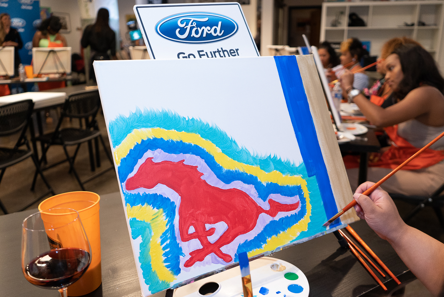 Over the weekend at The Beltline Studio in Atlanta, GA, Ford held their signature “Paint and Dine” media experience to kick off the My City 4 Ways Atlanta Culture Festival, a partnership between Ford and Essence. Atlanta based artist, Melissa Mitchell led a fun and entertaining art class where the exclusive group of top journalists and influencers created their own Mustang Pony inspired art. The group was greeted at the entrance by a sleek black Ford Mustang GT Convertible Premium, which made for the perfect photo opportunity. They also enjoyed a beautiful rooftop dinner overlooking the Atlanta skyline. The delicious food was specially prepared by Chef Aleem and Chef Porter. Dee Guerrero, Multicultural Communications Manager, Ford Motor Company, hosted the event and showcased several of Ford’s latest commercials including creative for both their Escape and Explorer, which are equipped with Alexa and Waze, allowing hands-free navigation.
