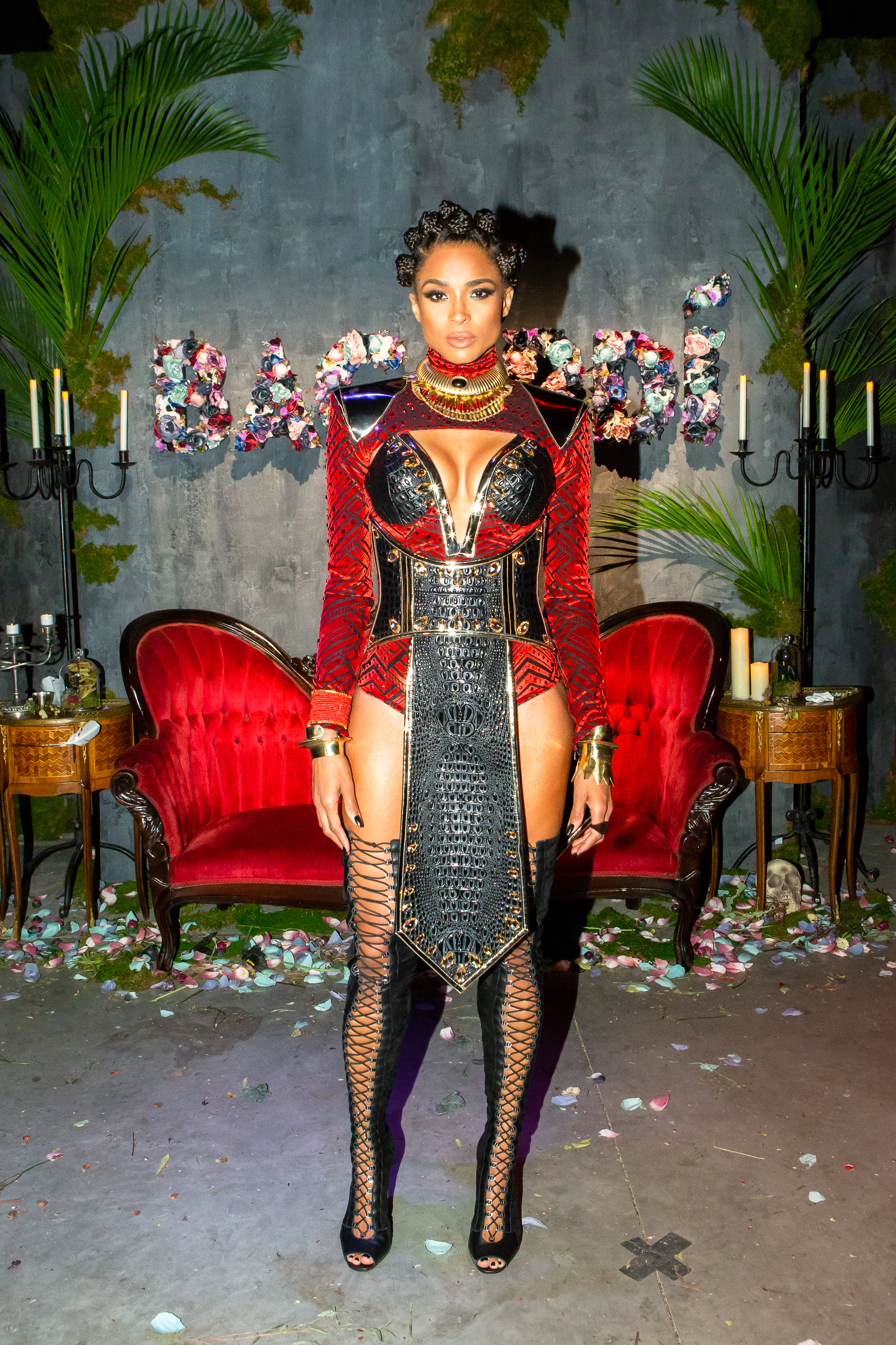Ciara, who just celebrated her 33rd birthday last week, is back in the music scene after a three-year hiatus and already climbing the charts with new hits “Dose” and “Level Up.” Last night, the ATL singer dressed as Nakia, Lupita Nyong’o’s character in the Blockbuster film Black Panther. Ciara and Swizz Beatz drew spirited crowds of party guests as they sipped on BACARDÍ Zombie cocktails and snapped photos in front of a BACARDÍ sign arranged from dead roses.