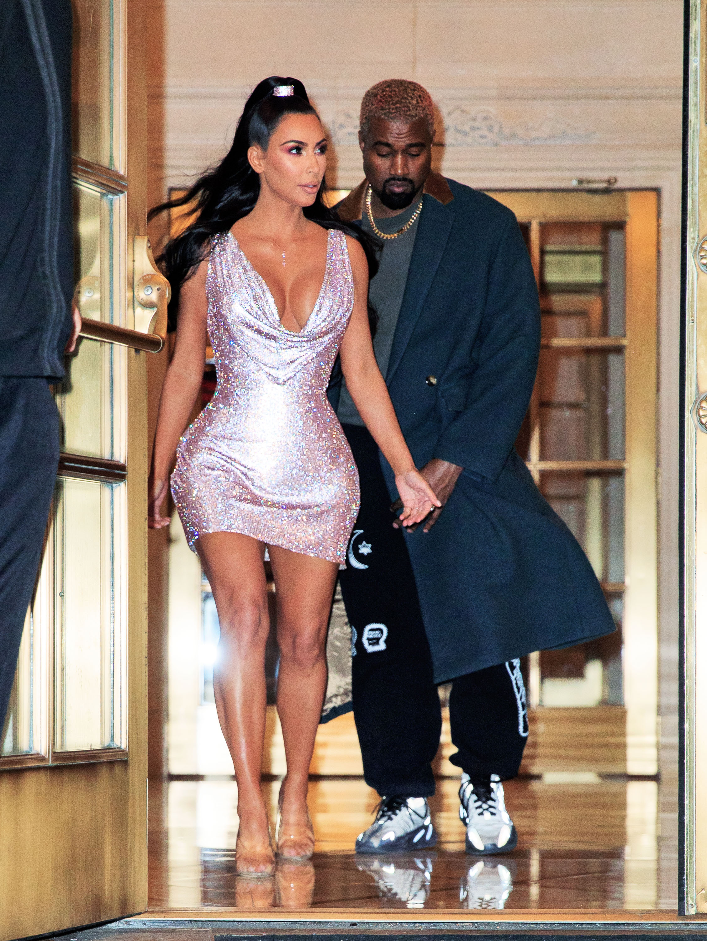 The paps captured Kim and Kanye on their way to the show