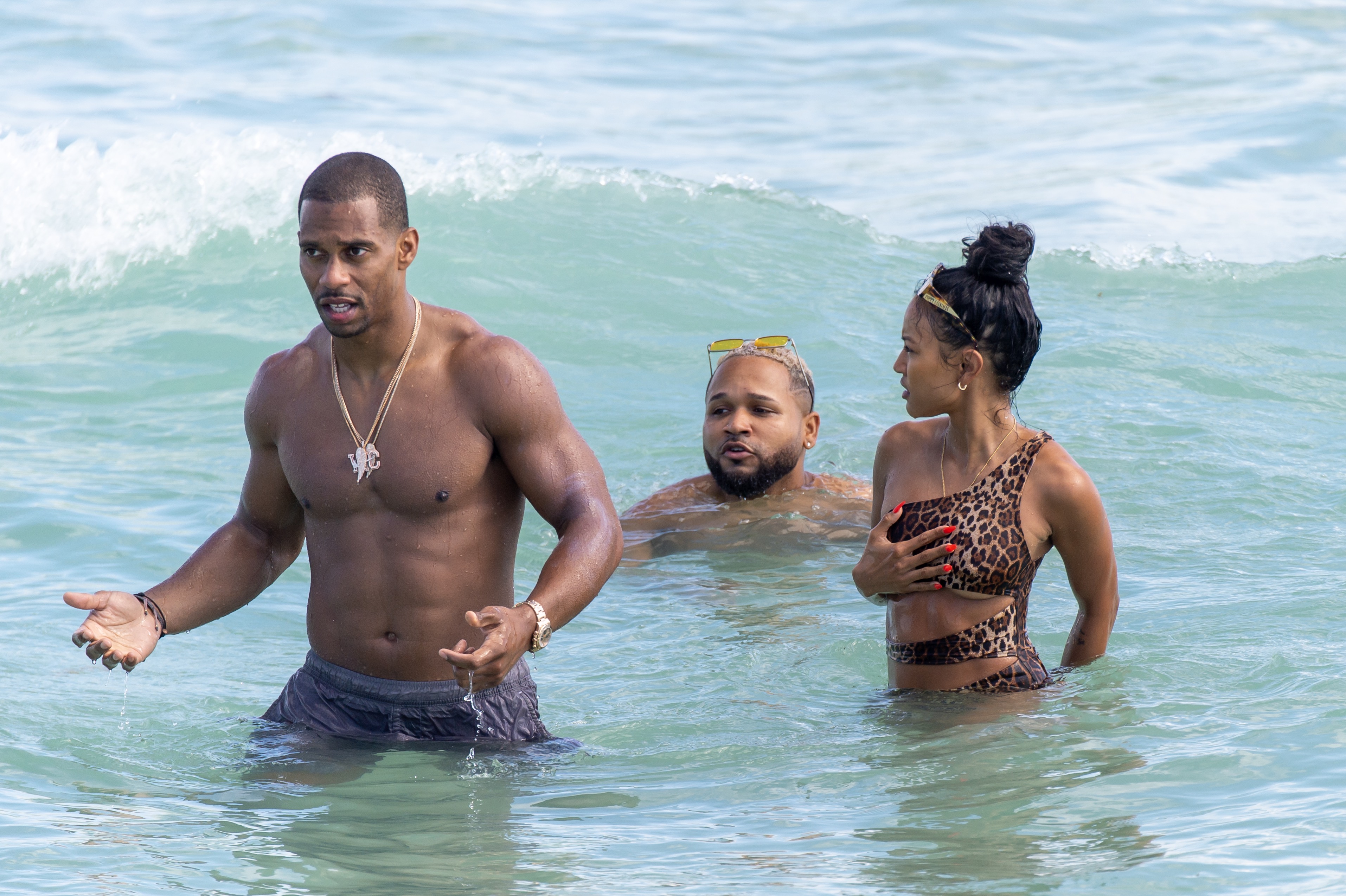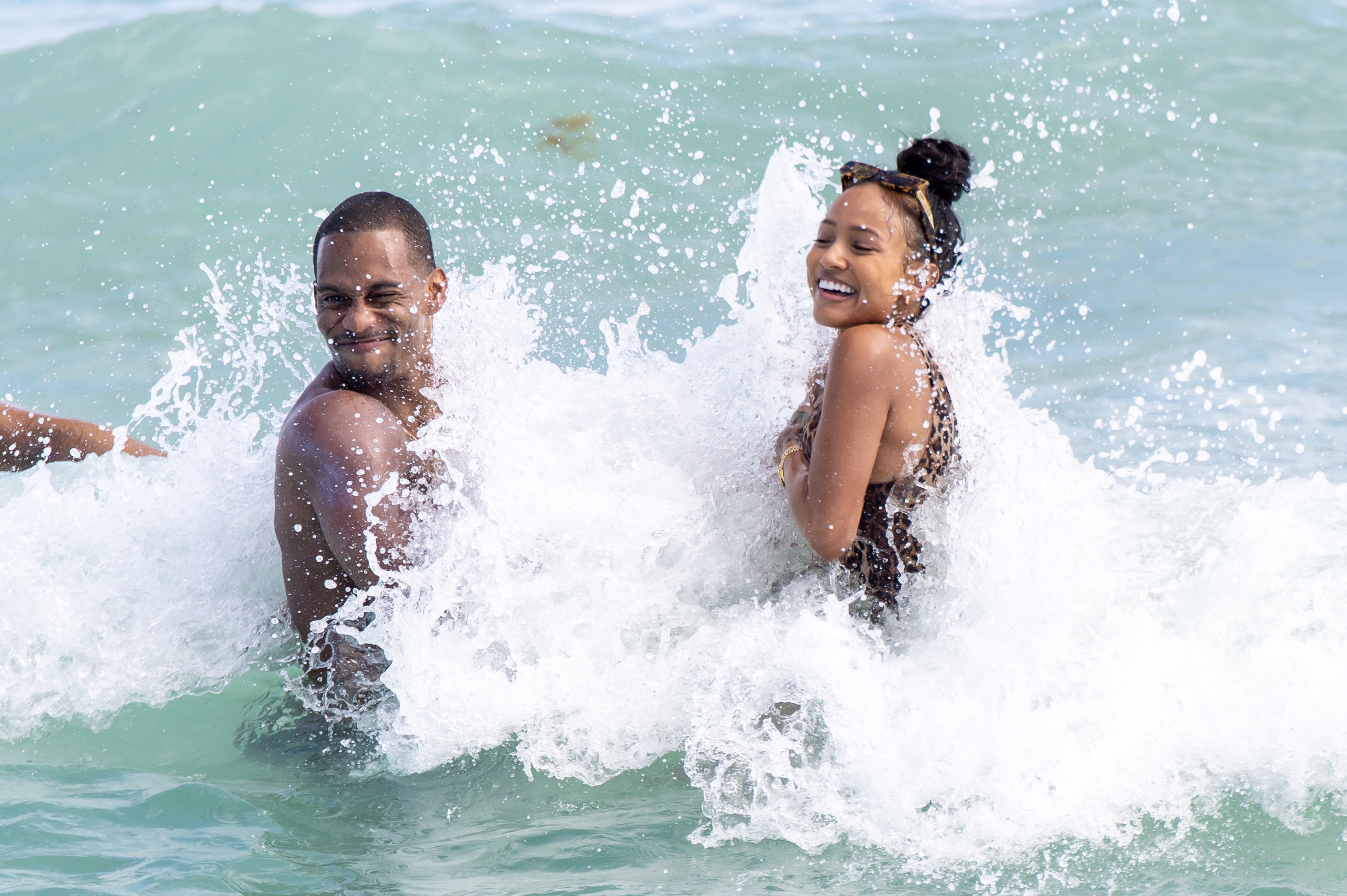 Victor Cruz and Karrueche Tran brought in the New Year with their relationship looking super strong. The couple were photographed frolicking in the ocean at Miami Beach on New Year’s Eve.