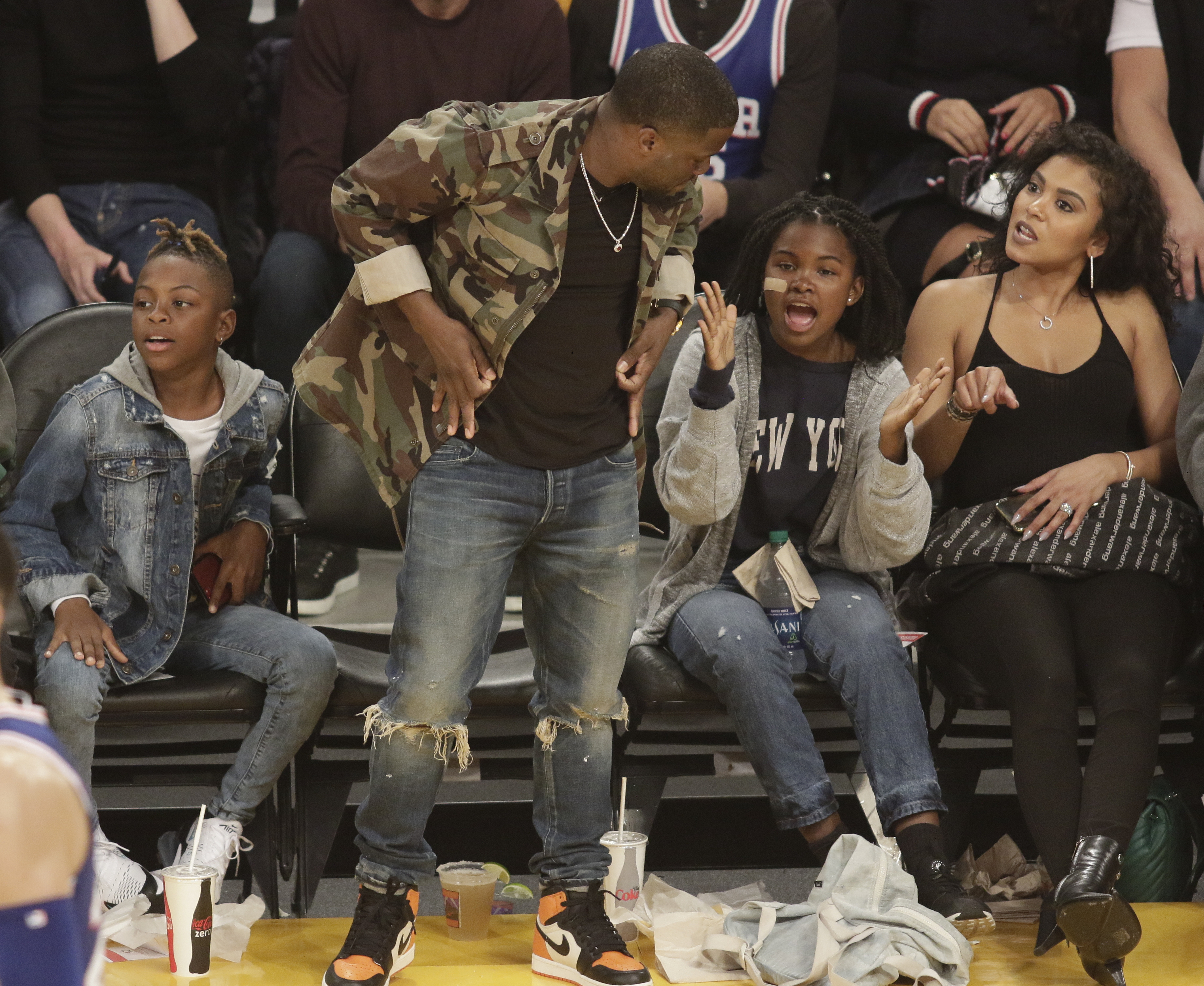 Kevin Hart Takes His Family To Lakers Game