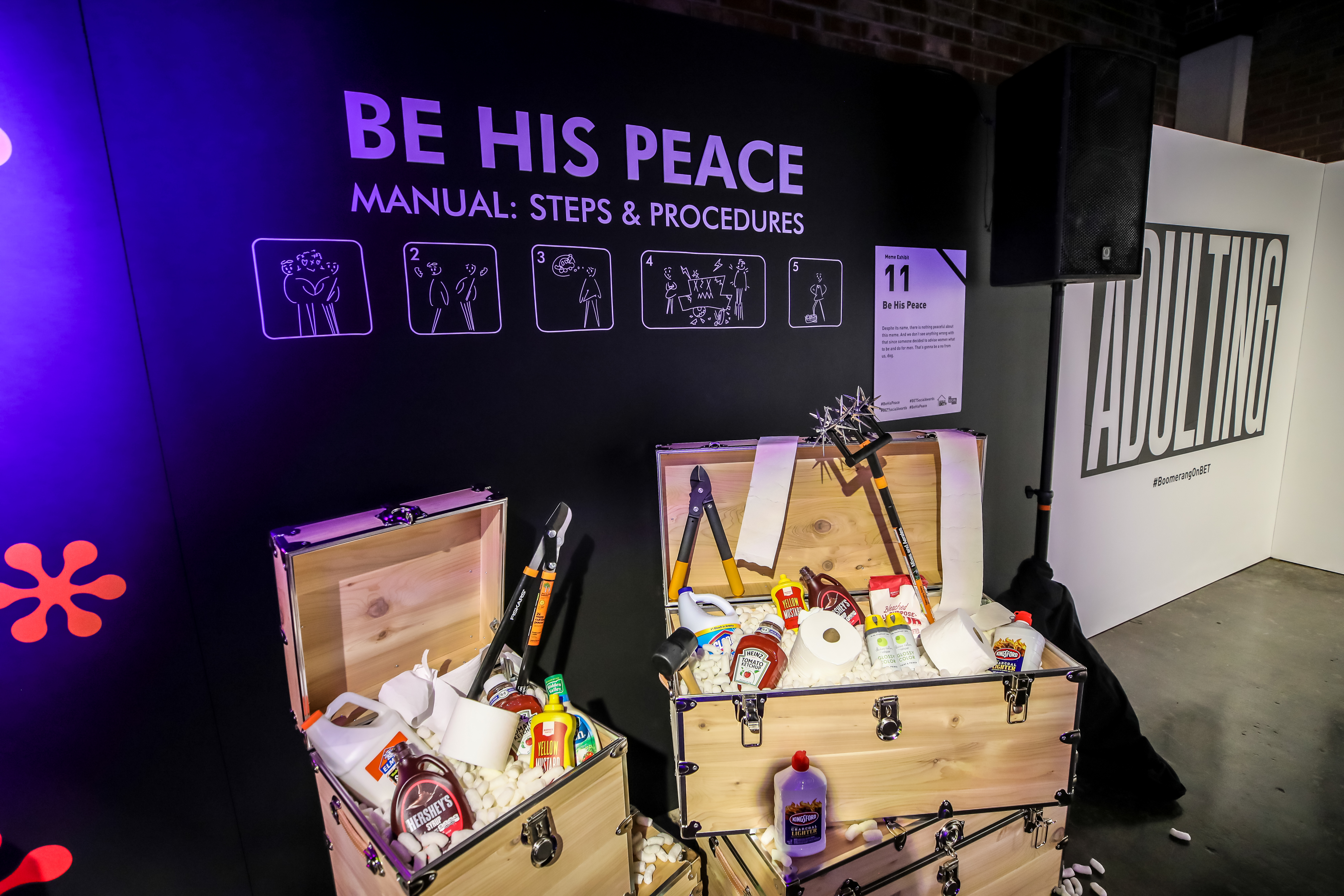 The experience also showcased this year’s BET MUSEUM OF MEME, which first launched in 2018 for the inaugural BET Social Awards. Comedic, social-media friendly exhibits included an “Is This Your King?” wall inspired by the film Black Panther, and “Squat Bae”. Another exhibit turned a popular lyric from Drake’s song “In My Feelings” into a game show. Guests were invited to answer the question, “Does Keke love you?” by picking a ping-pong ball that displayed emojis and other reactions.