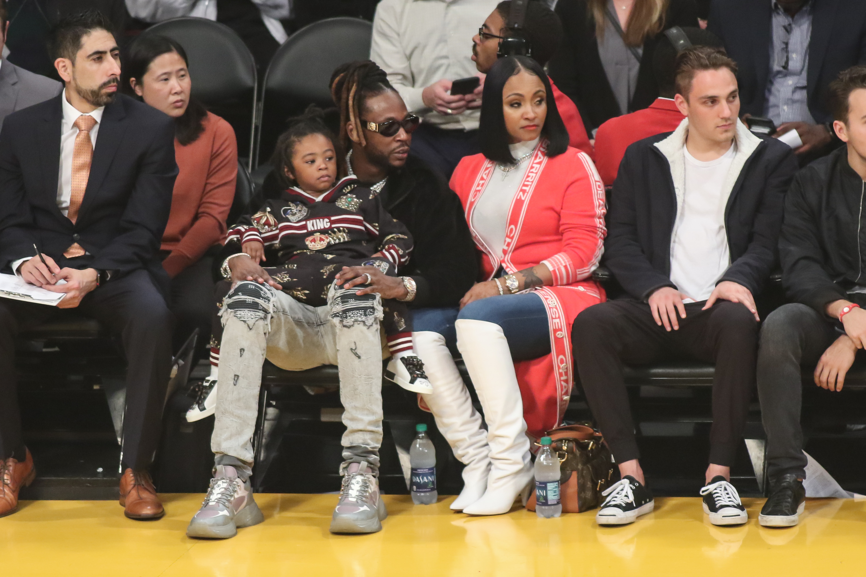 2 Chainz brought his wife and son to watch LeBron James and the Lakers play the Denver Nuggets Wednesday night.